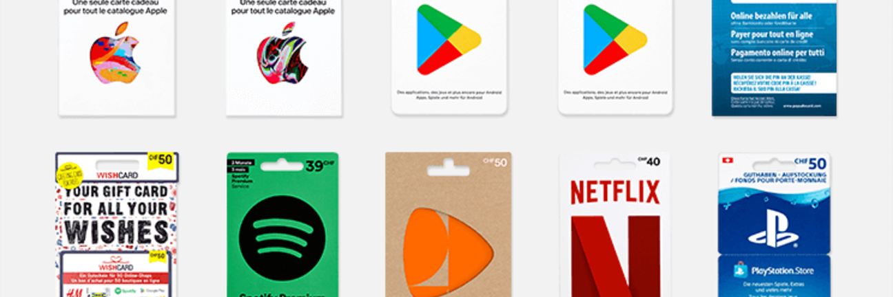 Denner bietet diverse Geschenkkarten an. Überraschen Sie Ihre Liebsten mit einer Sony Playstation-Geschenkkarte, Zalando-Geschenkkarte, Google Play- oder iTunes-Geschenkkarte. Einfach Karte an der Kasse auswählen und Wünsche erfüllen.