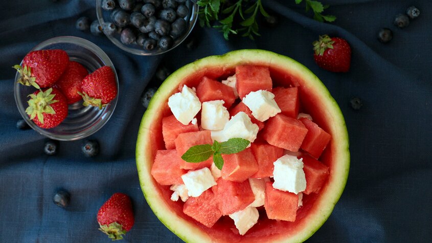 10-Minuten-Rezept: erfrischender Wassermelonen-Feta-Salat
