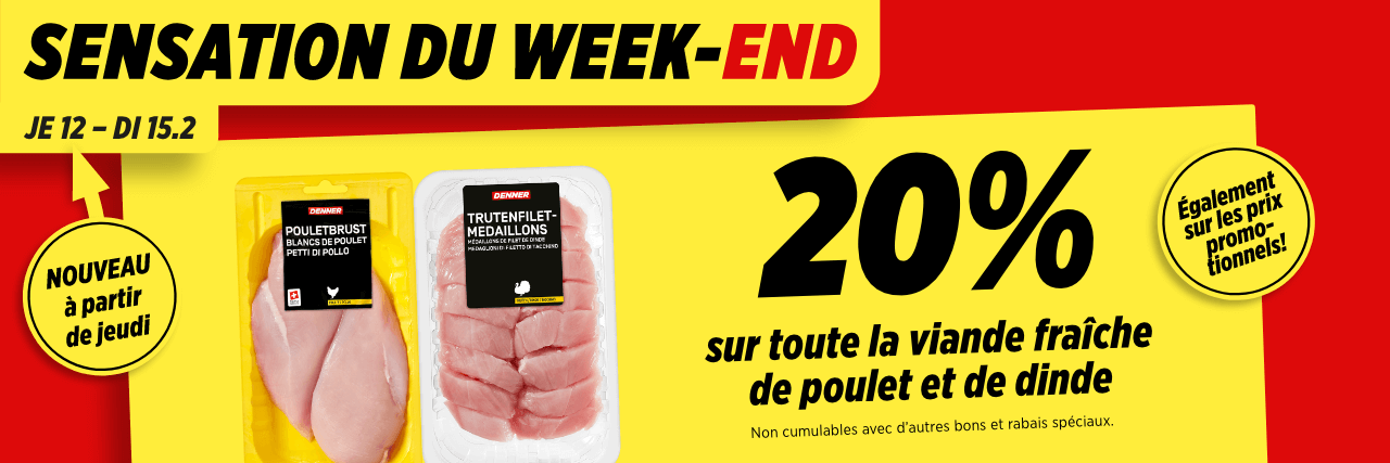 20% sur toute la viande fraîche de poulet et de dinde