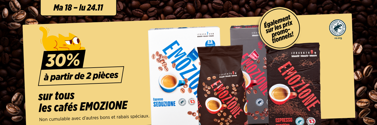 30% à partir de 2 pièces sur toutes produits de café EMOZIONE