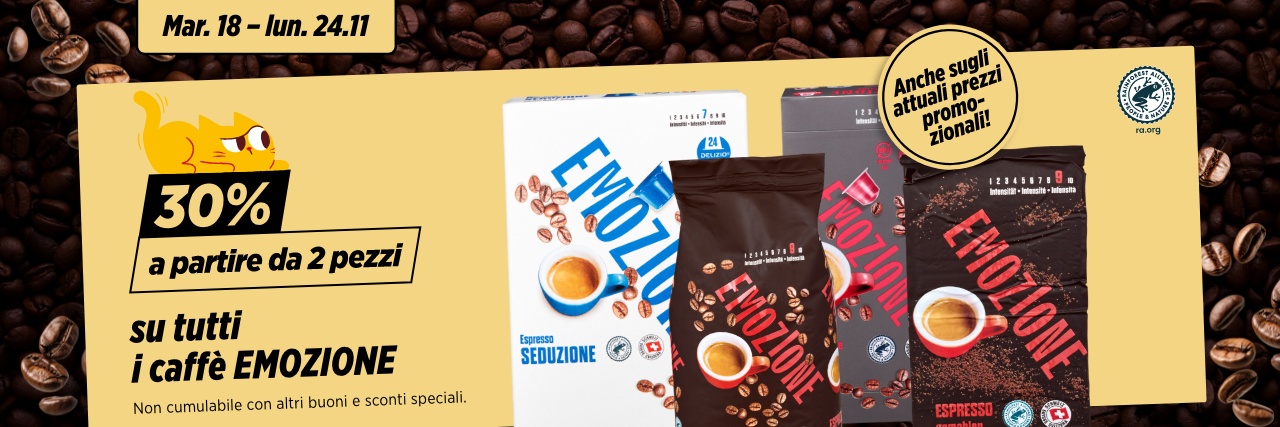 30% a partire da 2 pezzi su tutte prodotti di caffè EMOZIONE
